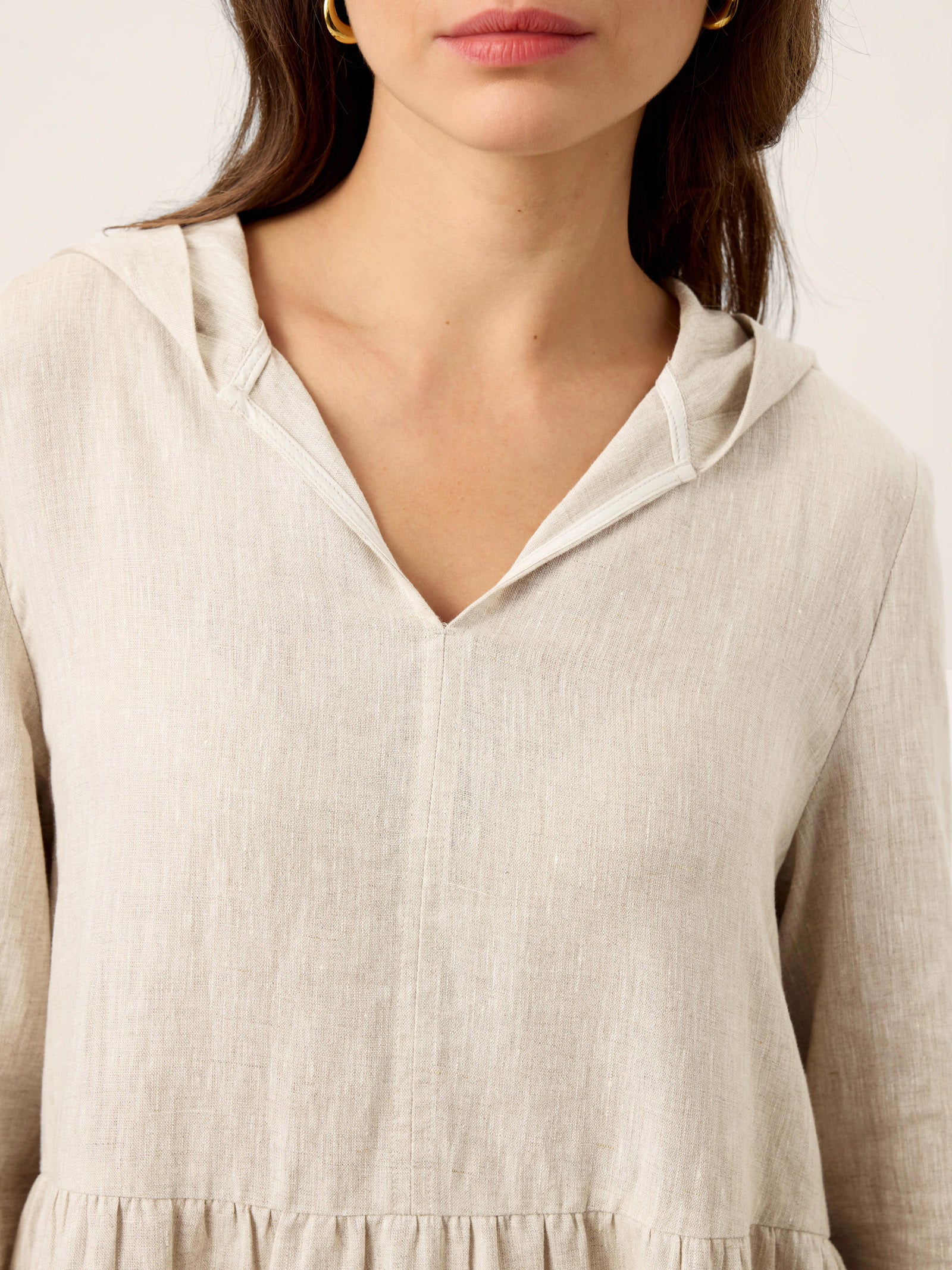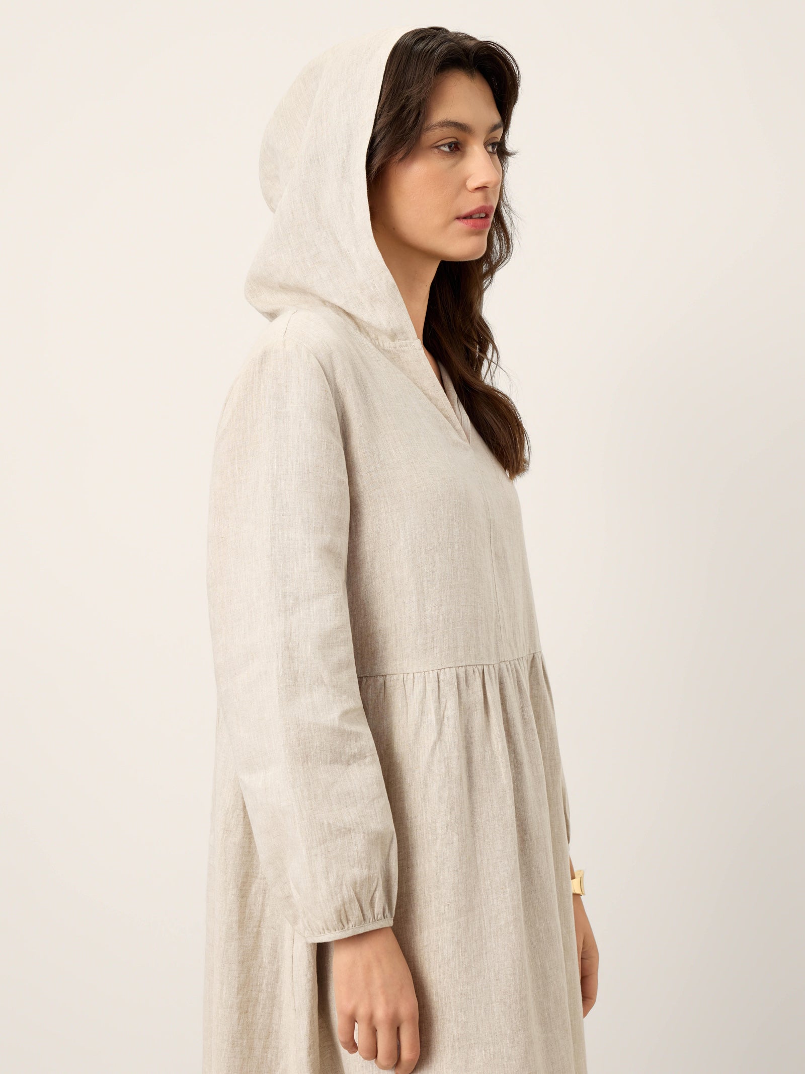 Cozy Coverage Meets Clean, Modern Lines Avery | Women’s Linen Sculpted Hood Caftan Maxi Dress