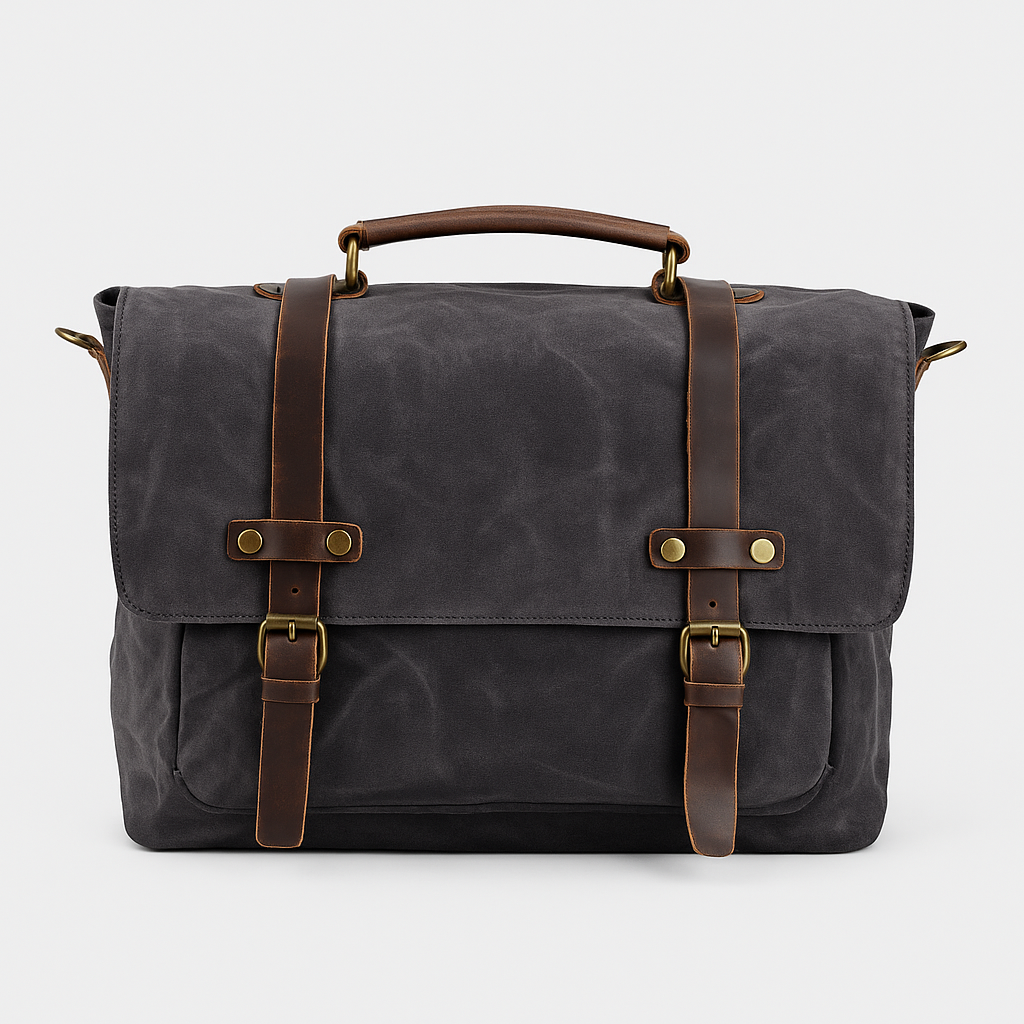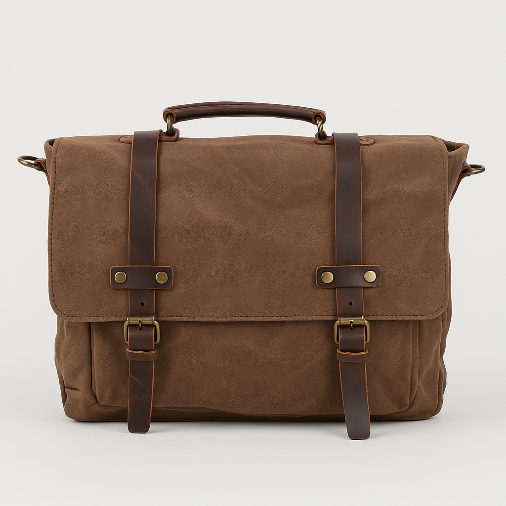 The Bruges Messenger Bag combines rugged elegance with practical functionality. Crafted from waxed cotton canvas and vegan leather, this bag is designed to withstand the test of time while offering a vintage charm suitable for both casual outings and professional environments.