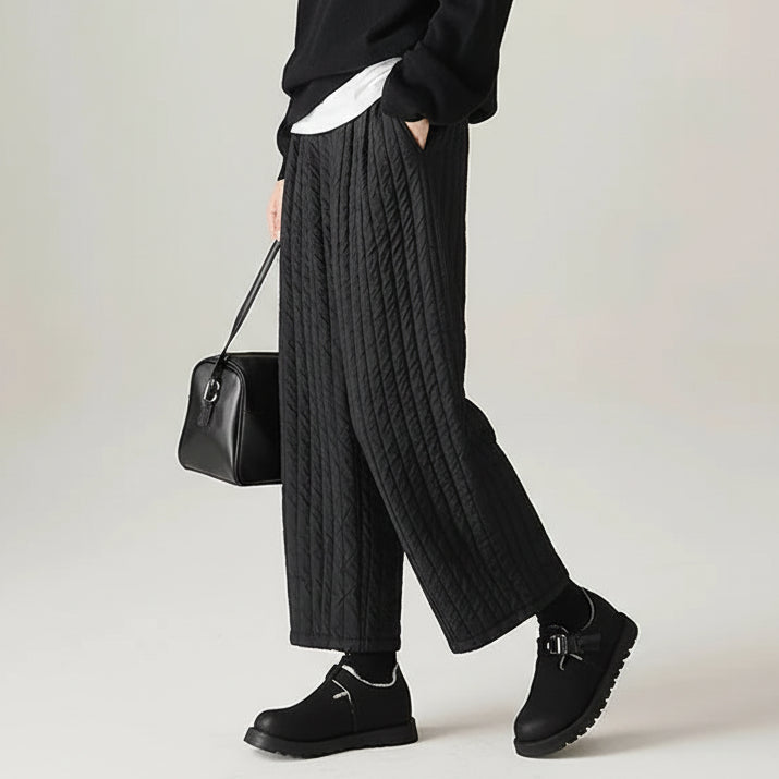 - Features: Quilted insulated design, soft interior lining, wide-leg silhouette